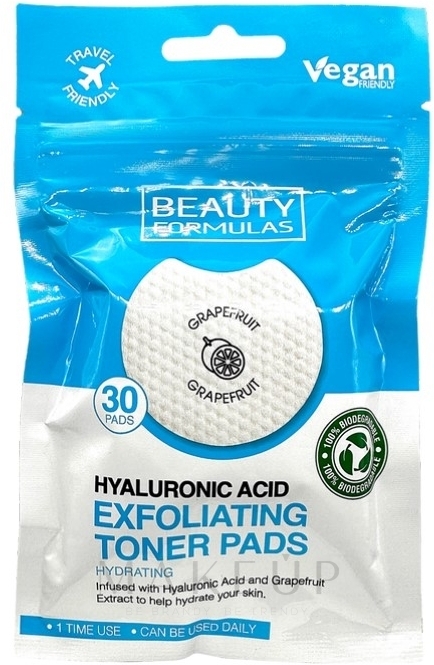 Moisturizing exfoliating pads contain hyaluronic acid and grapefruit extract to hydrate the skin.