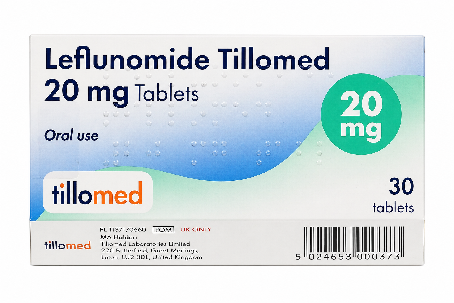 This medication is a disease-modifying antirheumatic drug (DMARD) used to treat active rheumatoid arthritis and psoriatic arthritis Leflunomide Tillomed 20 mg Tablets