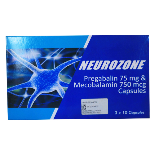 Neurozone Capsules contain Pregabalin 75mg and Mecobalamin 750mcg. It is prescribed for the treatment of spinal cord injury-related neuropathic pain.
