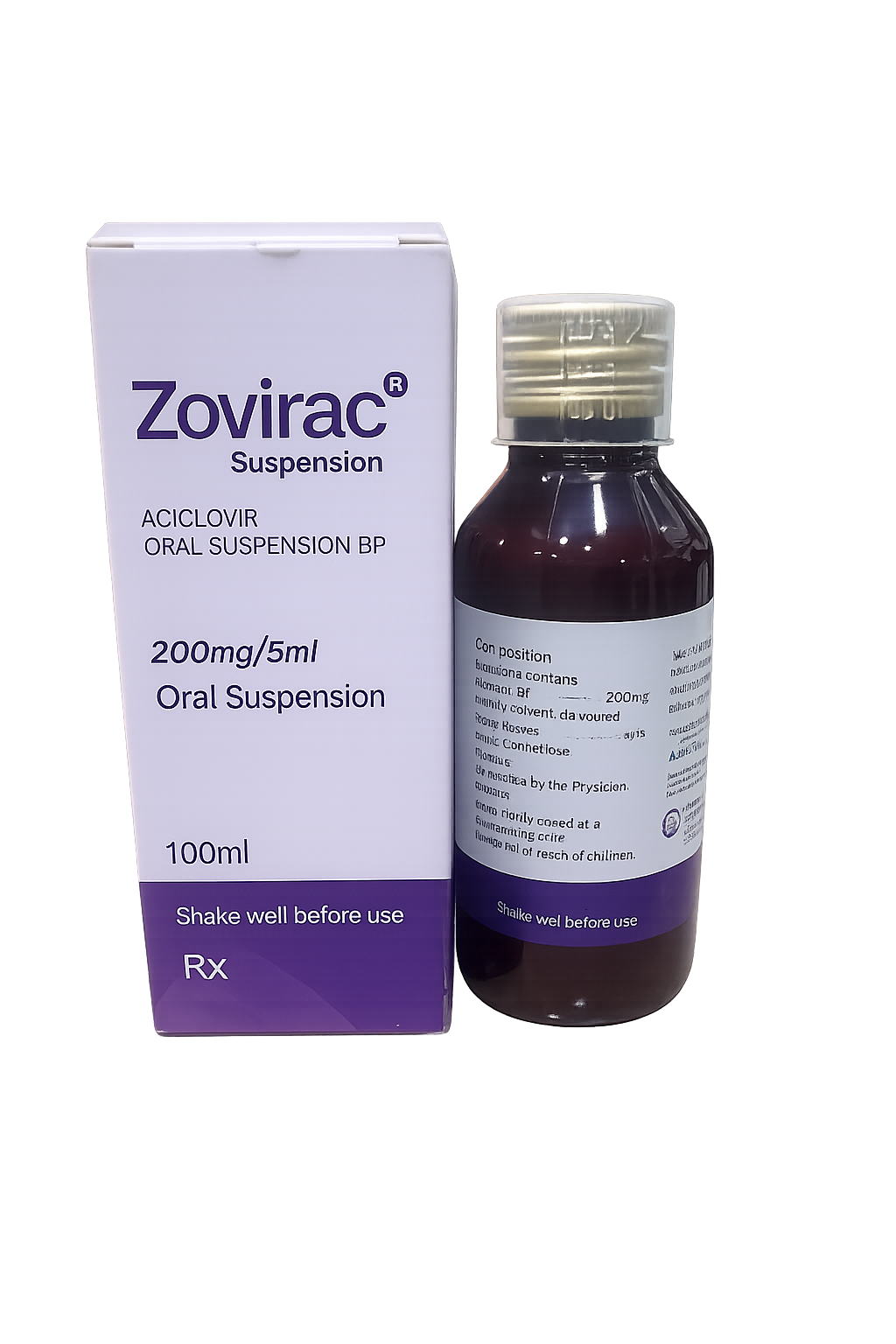 Zovirac Suspension is an oral antiviral medication containing acyclovir, used for the treatment of viral infections caused by herpes viruses. It is commonly prescribed for conditions such as cold sores, genital herpes, chickenpox, and shingles.